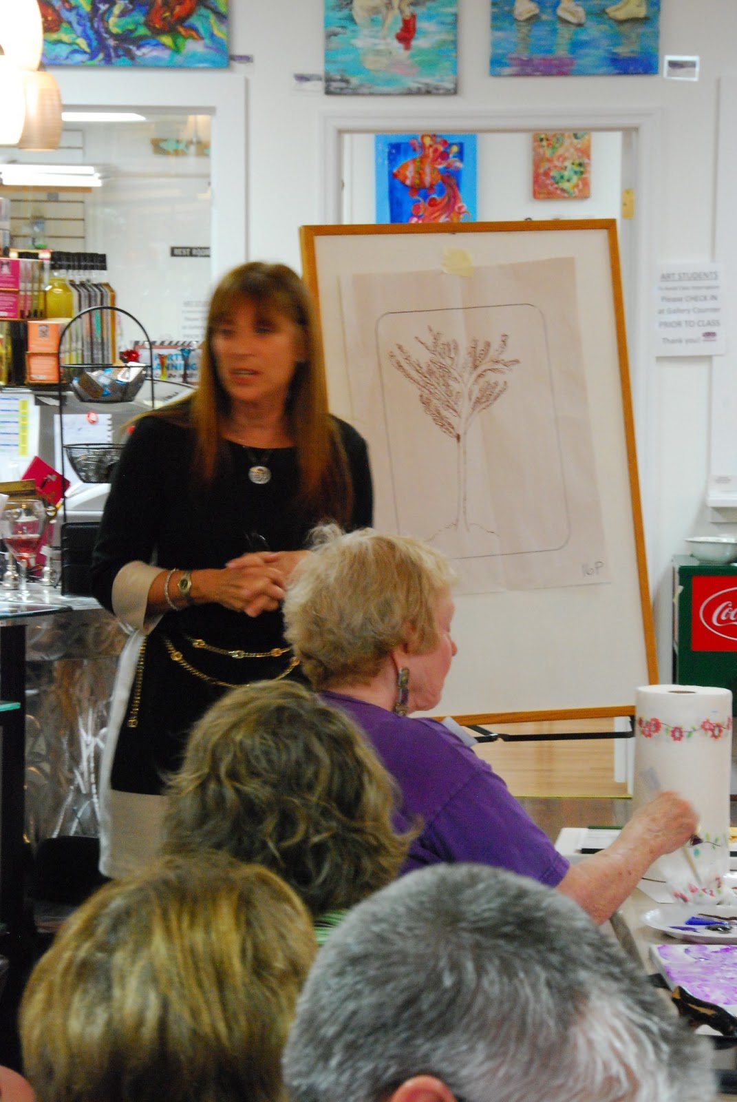 We drew trees, and then painted them…and our special guest, Dr. Janet Crain, did anonymous interpretations of the meaning behind the symbolic choices in our trees. She is the creator of the mobile app, “Draw Me a Tree”, and all of us were fascinated by what our trees might be telling us. You may want to check it out for yourself!