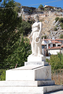This is a statue of Sappho- A poet from Lesbos.  She is honored in the hilltown of Ayiassos which we visited today.  It seems especially appropriate to speak of poetry here in Greece.  Poetry is like a national pastime here.  The famous poet Homer is from this country. 1963 nobel laureate poet, Giorgios Seferis was also Greek.