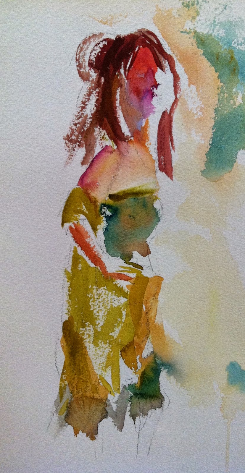 I love the figure and make it my business to draw and paint people whenever I can. This particular piece was executed with the clock ticking and a limited period of time to get it done. I have found that the energy injected into the process of doing timed studies really helps to impart a dynamic quality to my drawings and paintings. Not all of them are great, but this one turned out well.