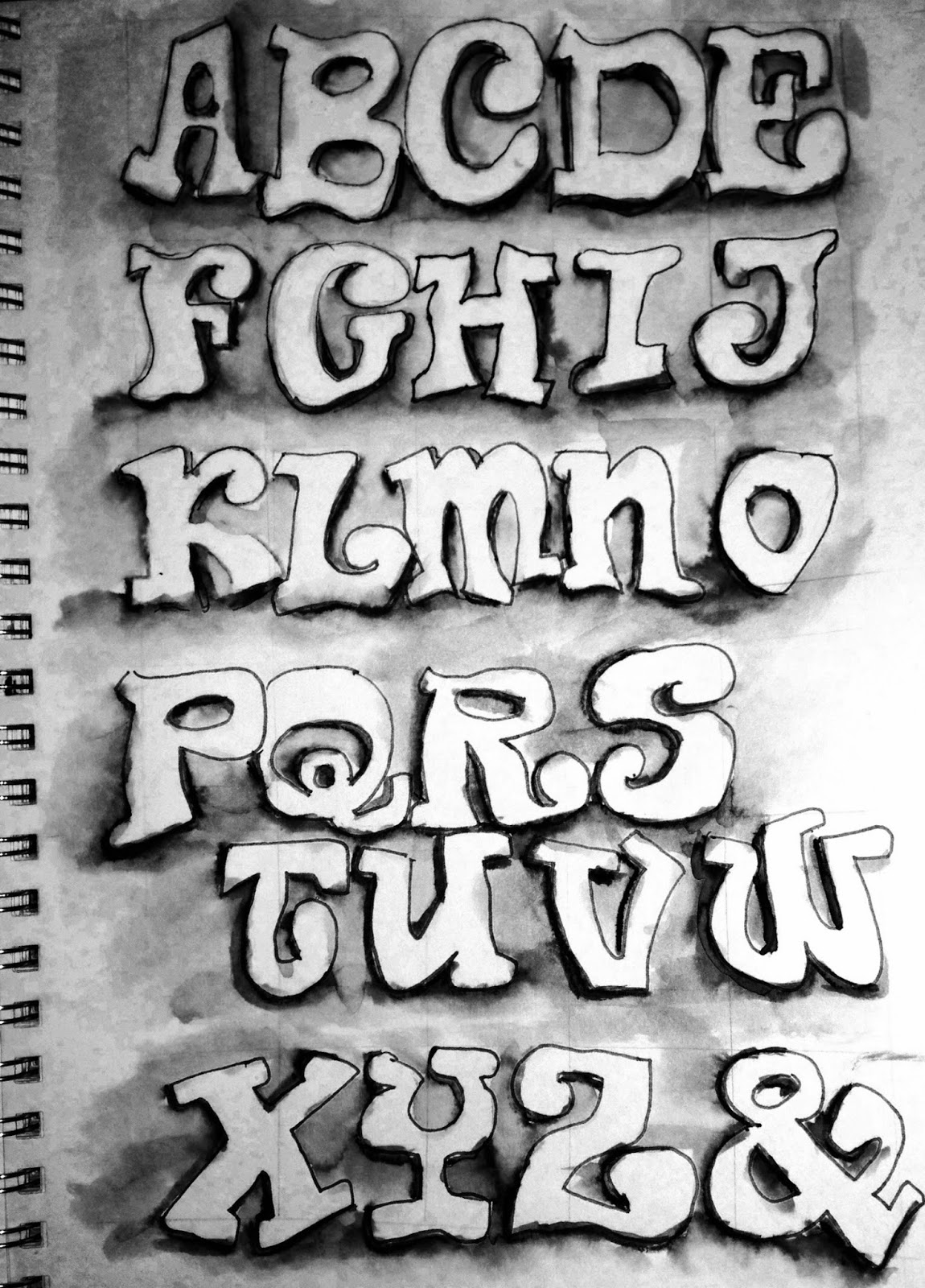 Step 1- Pick out a font and draw the letters. Think of each one as a drawing. If the letter is enclosed in a box (as the one above) you can use the negative shape around the letter to help you form the shape correctly.