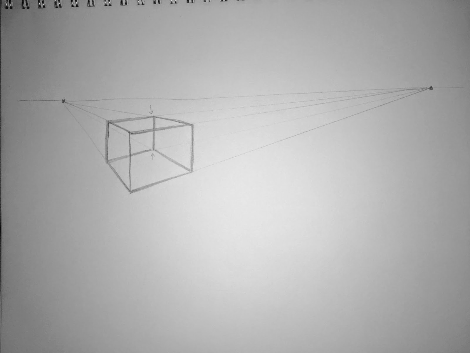 There you go! You’ve drawn a cube in 2 point perspective. This shape forms the basis of most architectural drawing and can be helpful drawing many other forms as well.