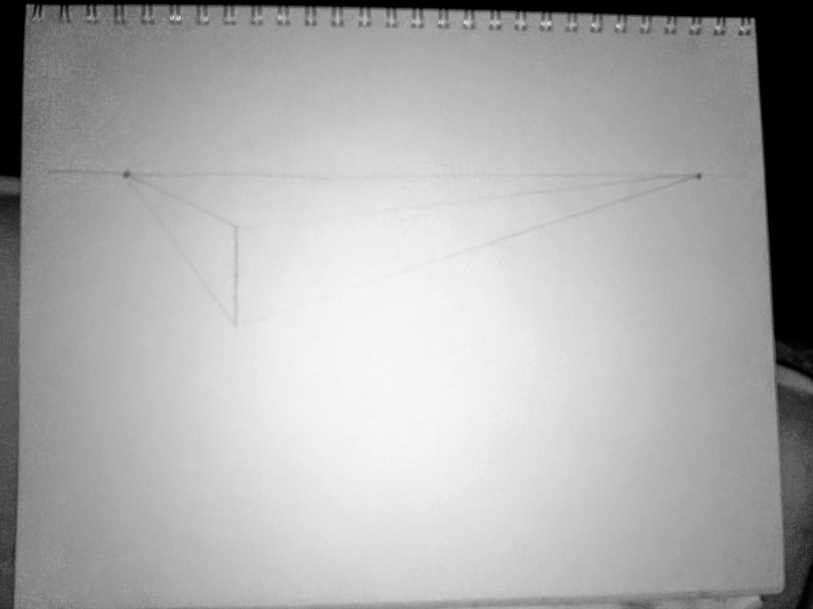 Step 6: From the Top of the Right edge draw a line to the disappearing point on the left. It recedes to the same point as those lines from the left side of the box, because why? Because they are parallel, or running in the same direction.