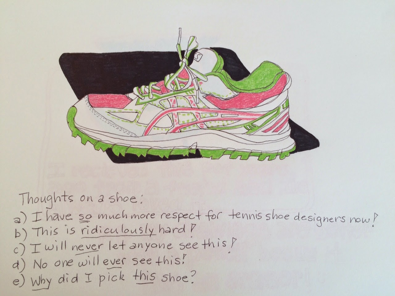 For those of you who are participating, look at these examples of real work from previous days of the challenge, sent in by real people just like you. I especially love the recorded “thoughts while drawing” of the shoe! lol If you send me your images prior to the end of the challenge, I’ll include them in future blogs.