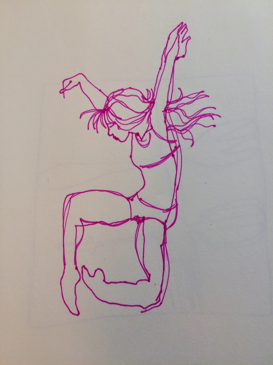Draw the ballerinas by Picasso by looking carefully at the drawing and the relationship of lines to one another, and to the edge. Try to not label anatomical features as anything but shapes and lines with direction. You can talk to yourself, and you can look at your paper (see how nice I am?).
