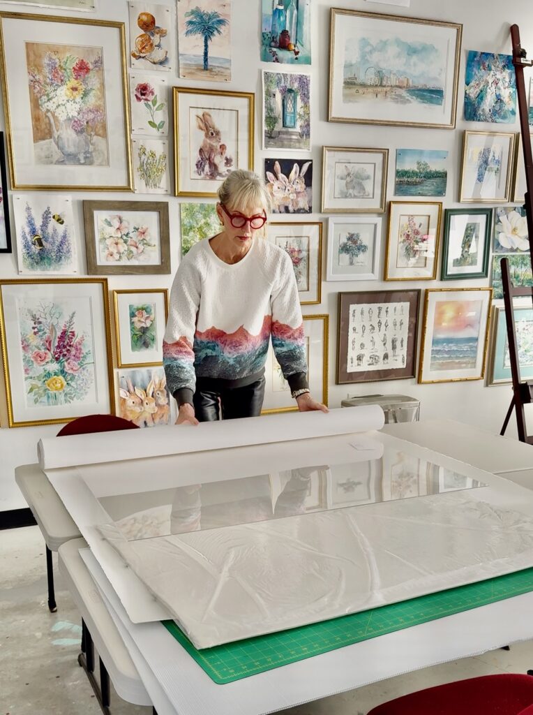 Once I started, I realized I couldn’t even remember the agreed-upon size of the painting. Numbers are not my thing. I remembered it was very large—but once I went back through old messages, I realized it was even larger than the biggest pre-cut watercolor paper I keep on hand.